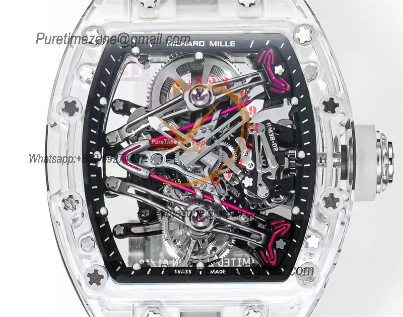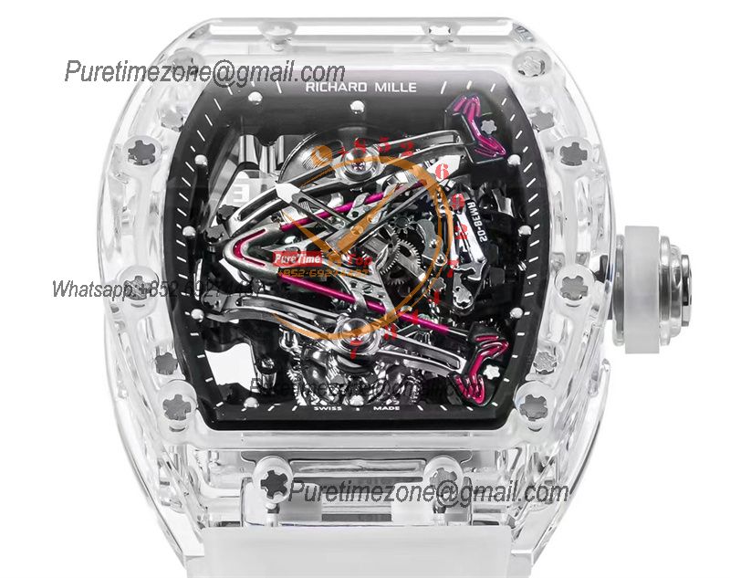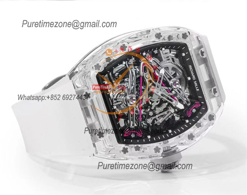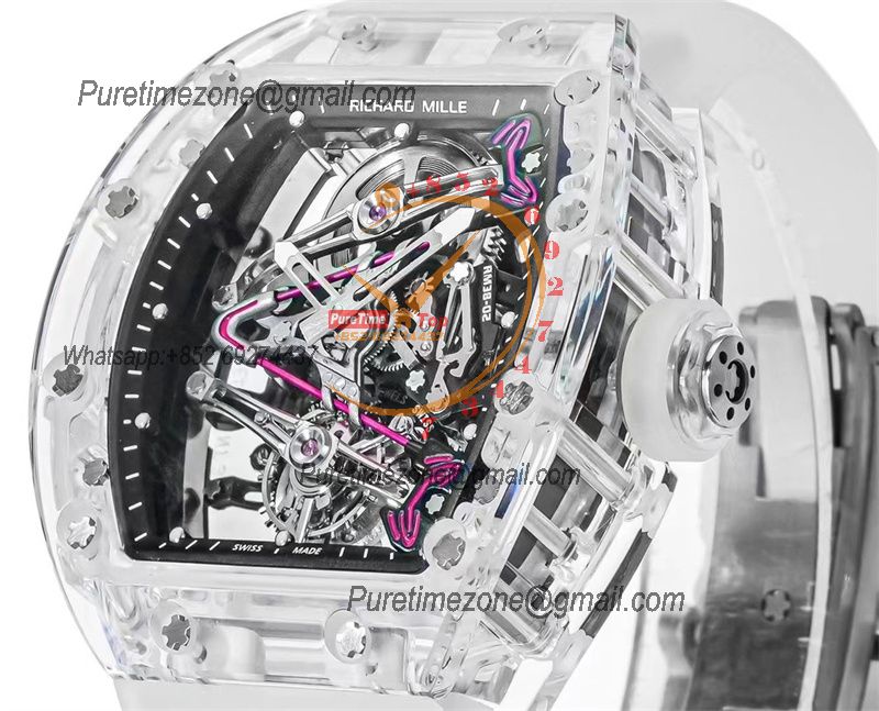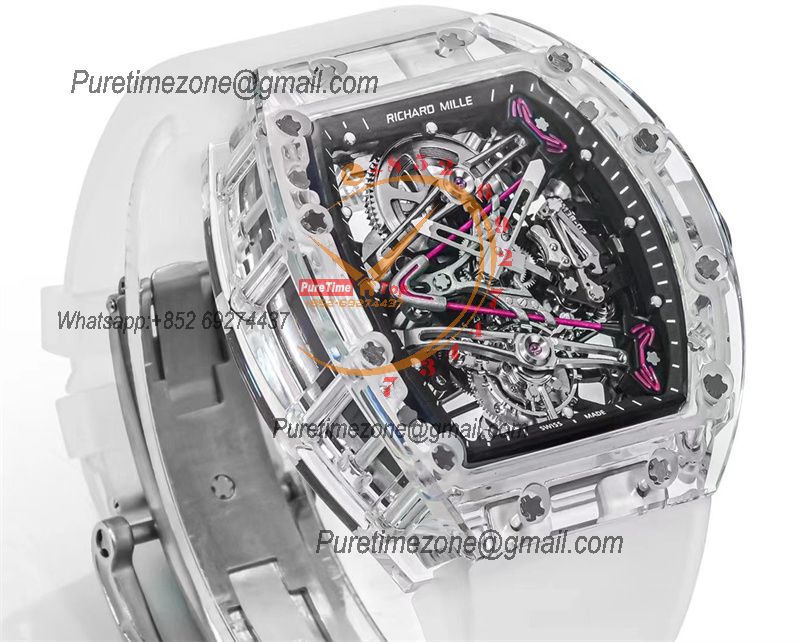Bubba Watson RM38-02 Manual Wind Real Tourbillon Mens Watch RMF Best Edition Transparent Case And Rubber CHS