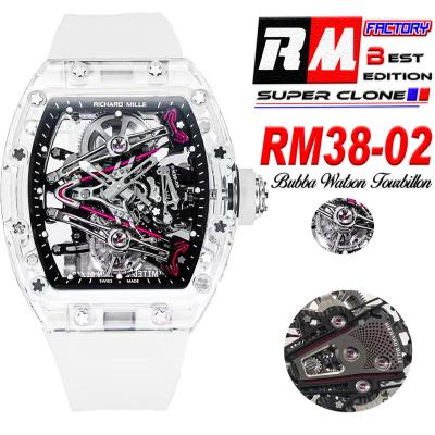 Home Richard Mille Bubba Watson RM38-02 Manual Wind Real Tourbillon Mens Watch RMF Best Edition Transparent Case And Rubber CHS