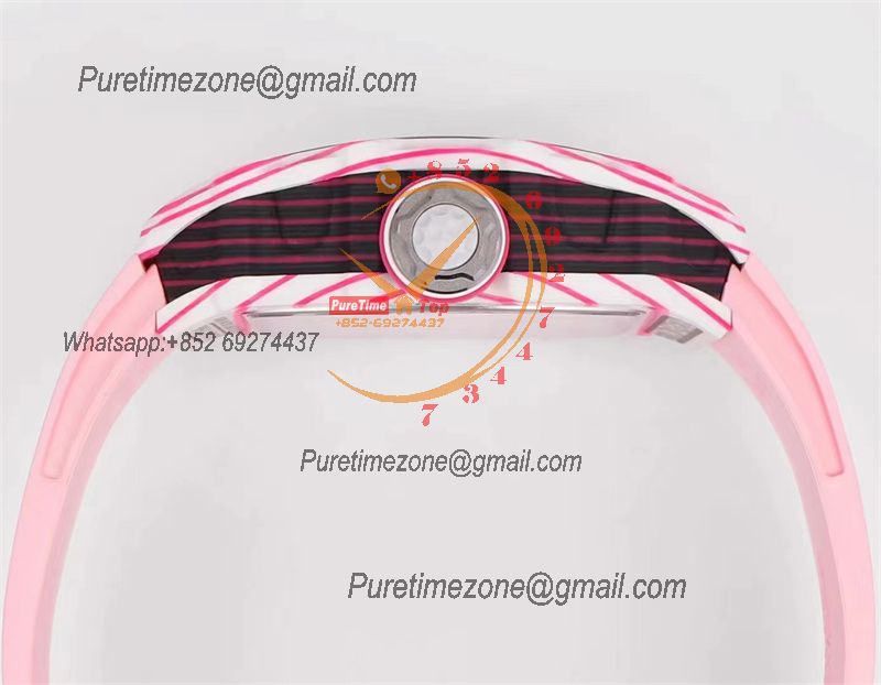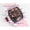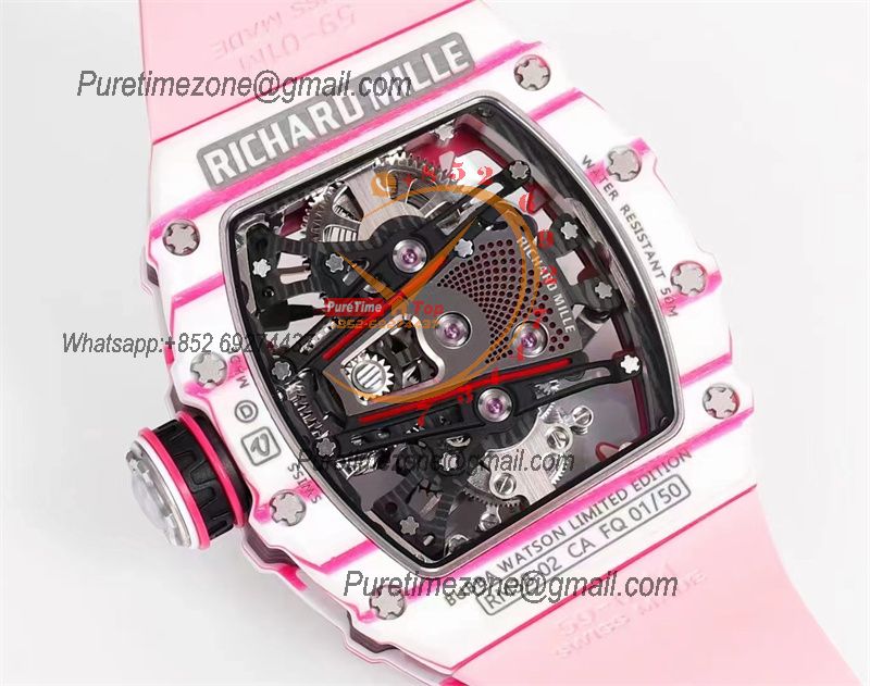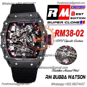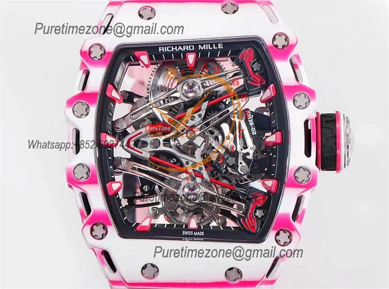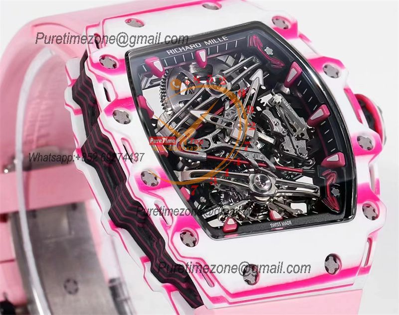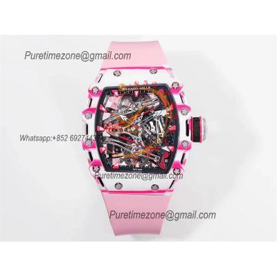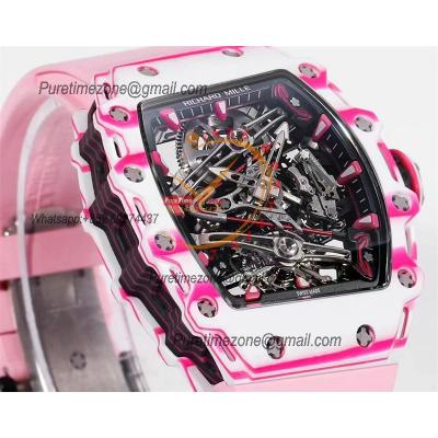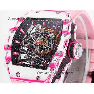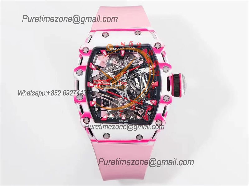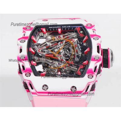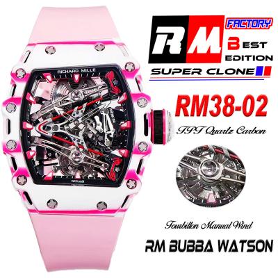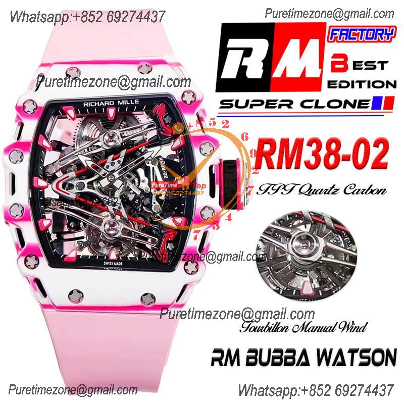 Bubba Watson RM38-02 Manual Wind Real Tourbillon Mens Watch RMF Best Edition White Carbon Fiber Pink Rubber CHS