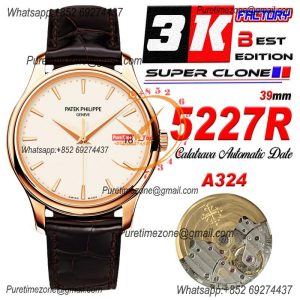 Calatrava 5227R 39mmA324 Atuomatic Mens Watch Best Edition 3KF V2 RG White Dial Brown Leather Strap CHS