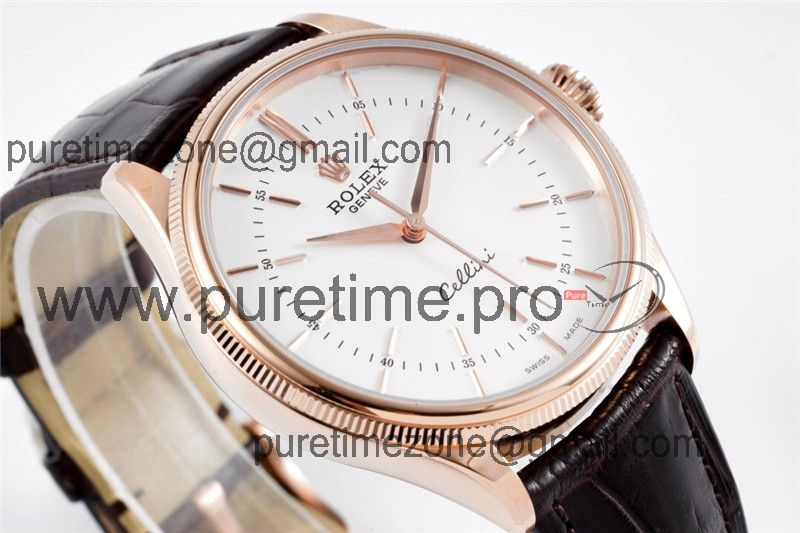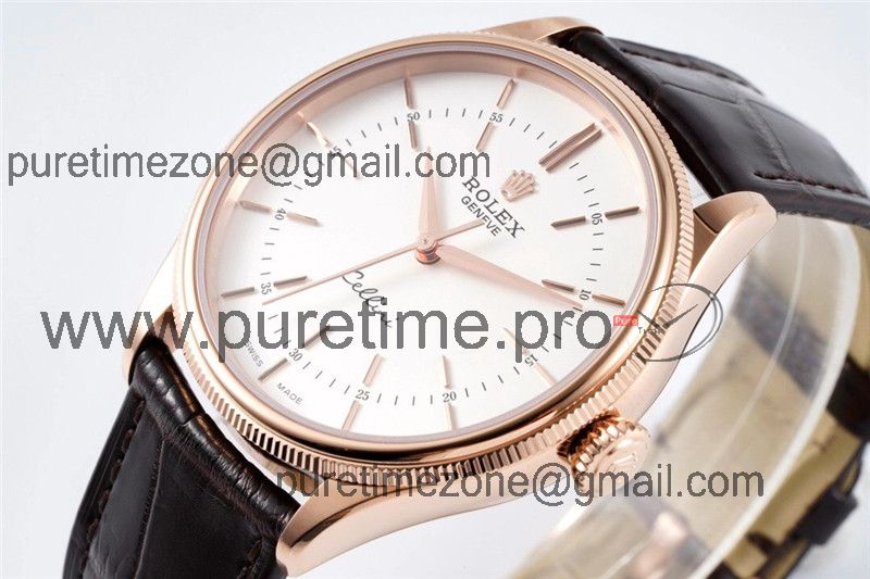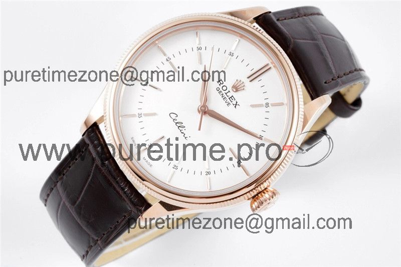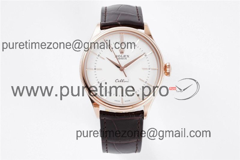 Home Rolex Cellini Cellini 50509 Cal A3132 Automatic Mens Watch Best Edition 39mm RG White Dial Black Leather Strap