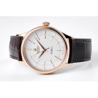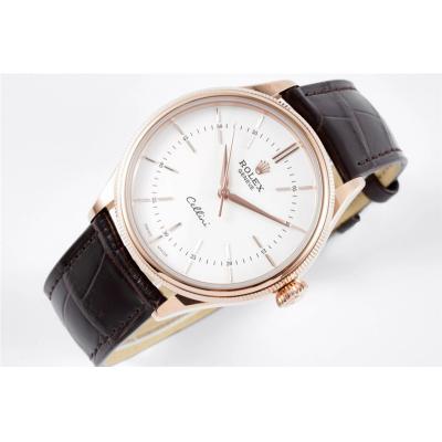 Home Rolex Cellini Cellini 50509 Cal A3132 Automatic Mens Watch Best Edition 39mm RG White Dial Black Leather Strap