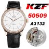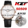 BSF Cellini Time 50505 A3132 Automatic Mens Watch Rose Gold White Dial Leather Strap Best Edition