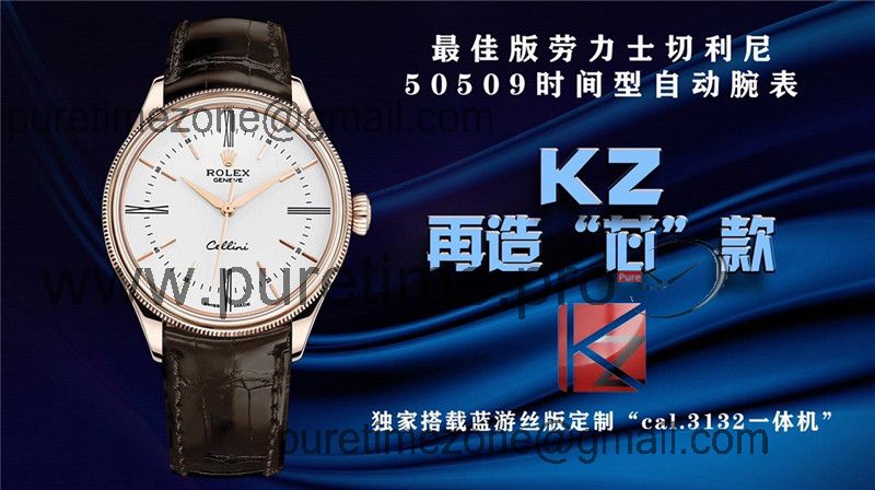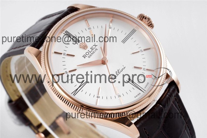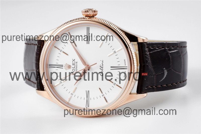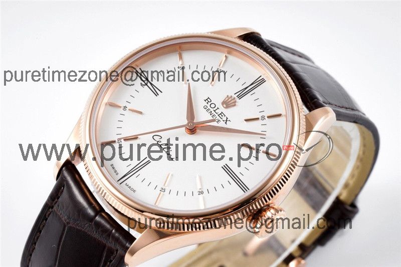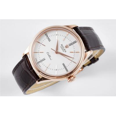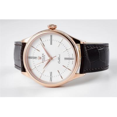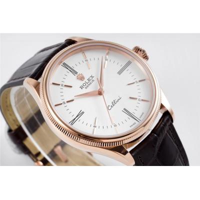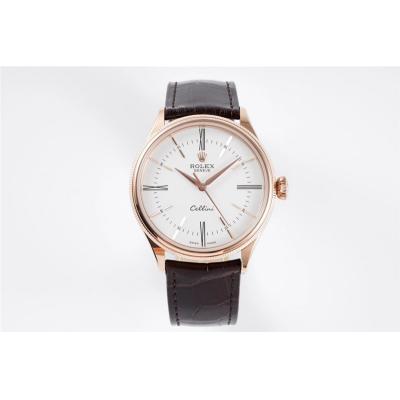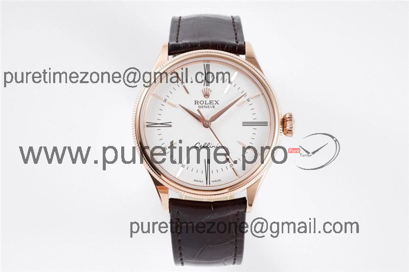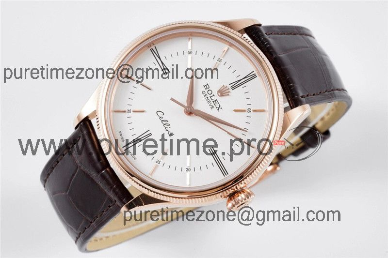 Home Rolex Cellini Cellini 50509 Cal A3132 Automatic Mens Watch Best Edition 39mm RG Whtie Dial Brown Leather Strap