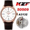EWF Cellini Date 50515 A3165 Automatic Mens Watch 39mm RG Silver Dial Leather Strap Best Edition