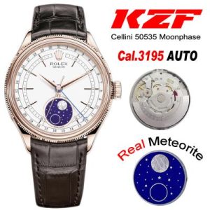 EWF Cellini Date 50535 Moon Phase A3195 Automatic Mens Watch 39mm RG White Dial Brown Leather Strap Best Edition