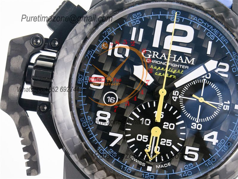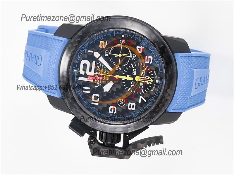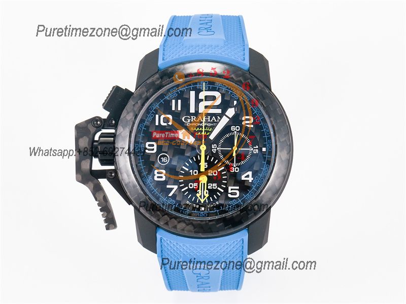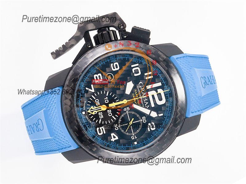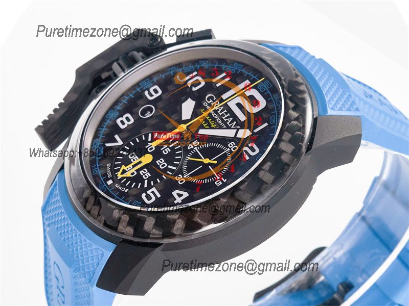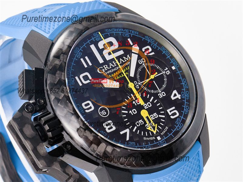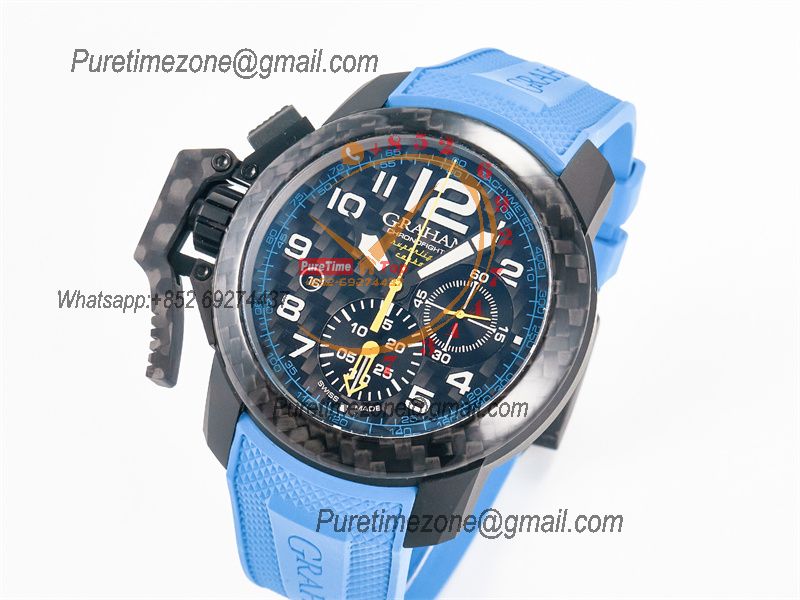 Home Graham Chronofighter Oversize Superlight A7750 Automatic Chronograph Mens Watch Best Edition JKF Carbon Dial Blue Rubber CHS