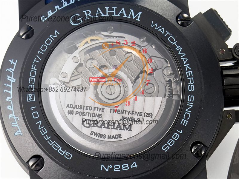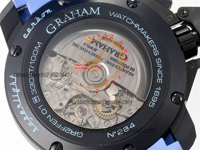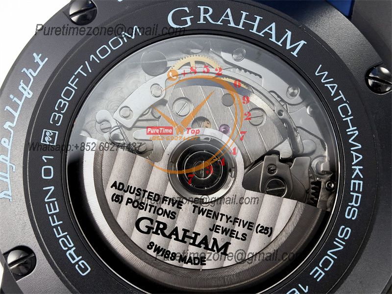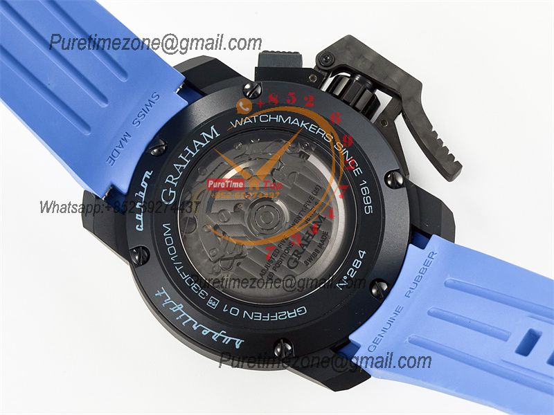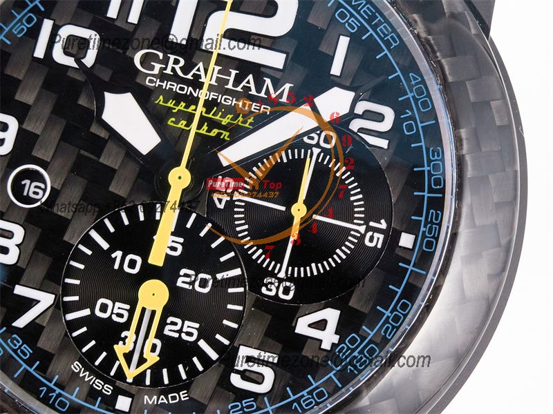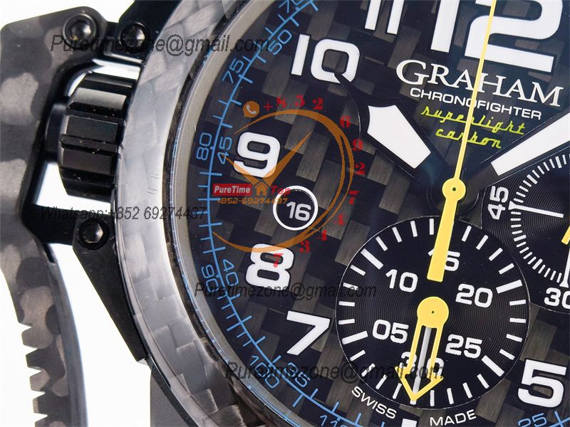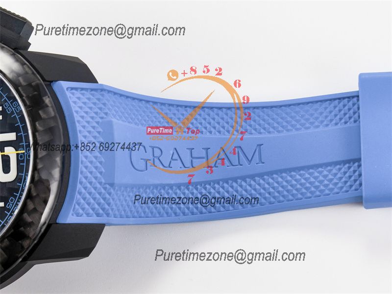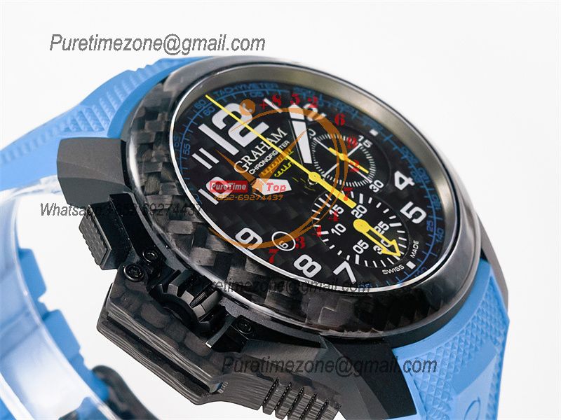 Home Graham Chronofighter Oversize Superlight A7750 Automatic Chronograph Mens Watch Best Edition JKF Carbon Dial Blue Rubber CHS
