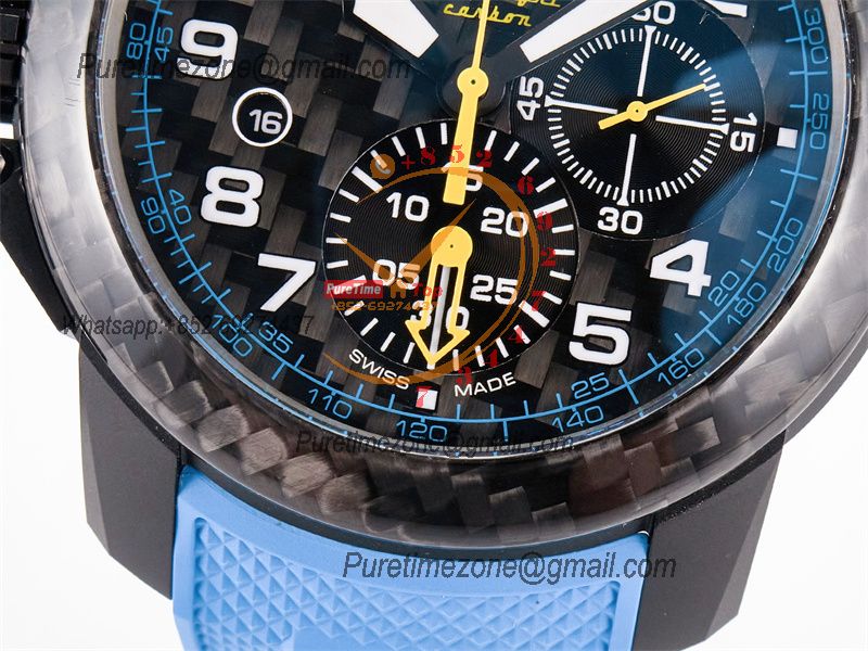 Chronofighter Oversize Superlight A7750 Automatic Chronograph Mens Watch Best Edition JKF Carbon Dial Blue Rubber CHS
