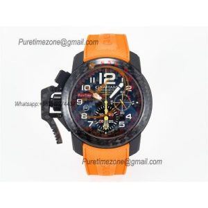 Chronofighter Oversize Superlight A7750 Automatic Chronograph Mens Watch Best Edition JKF Carbon Dial Orange Rubber CHS