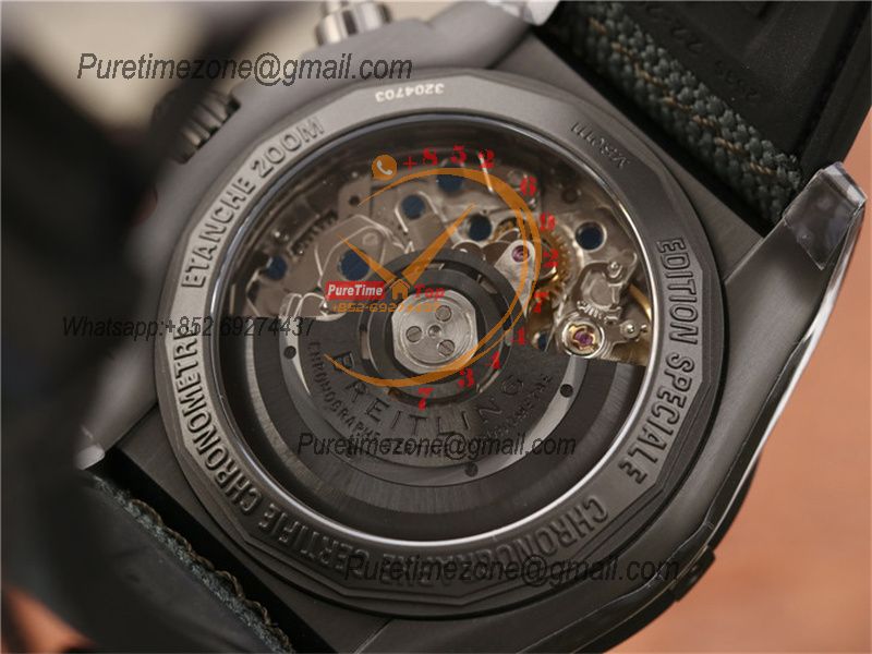 Movement:Asian 7750 automatic chronograph movement at 28800vph with black rotor