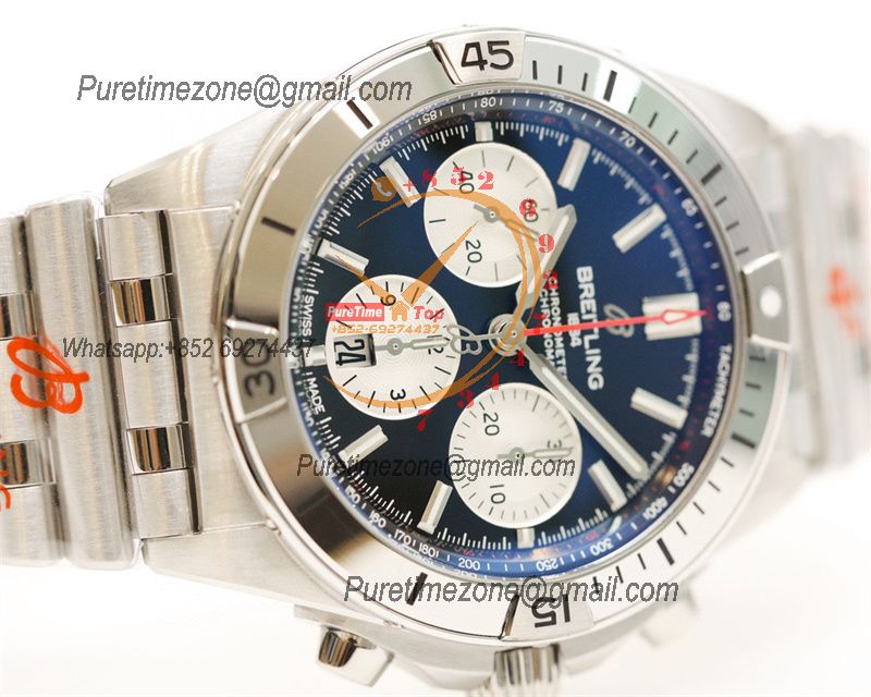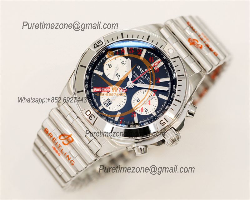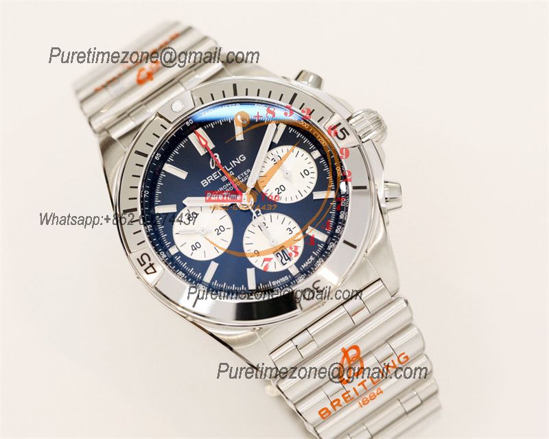Chronomat B01 AB0136161 A7750 Automatic Chronograph Mens Watch Best Edition BLSF 44mm Blue Dial SS Bracelet