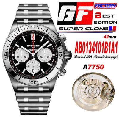 Chronomat B01 42 AB0134101B1A1 A7750 Automatic Chronograph Mens Watch Best Edition GF Black Dial SS Bracelet CHS