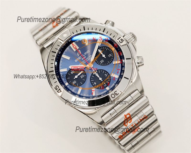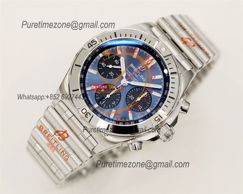Chronomat B01 AB0136161 A7750 Automatic Chronograph Mens Watch Best Edition BLSF 44mm Blue Dial SS Bracelet