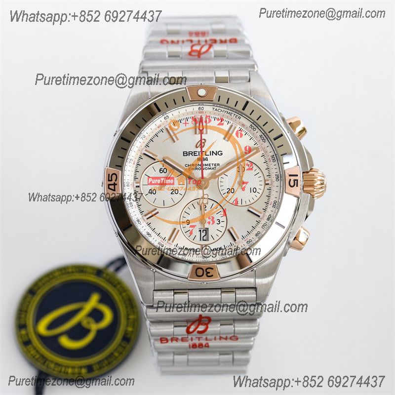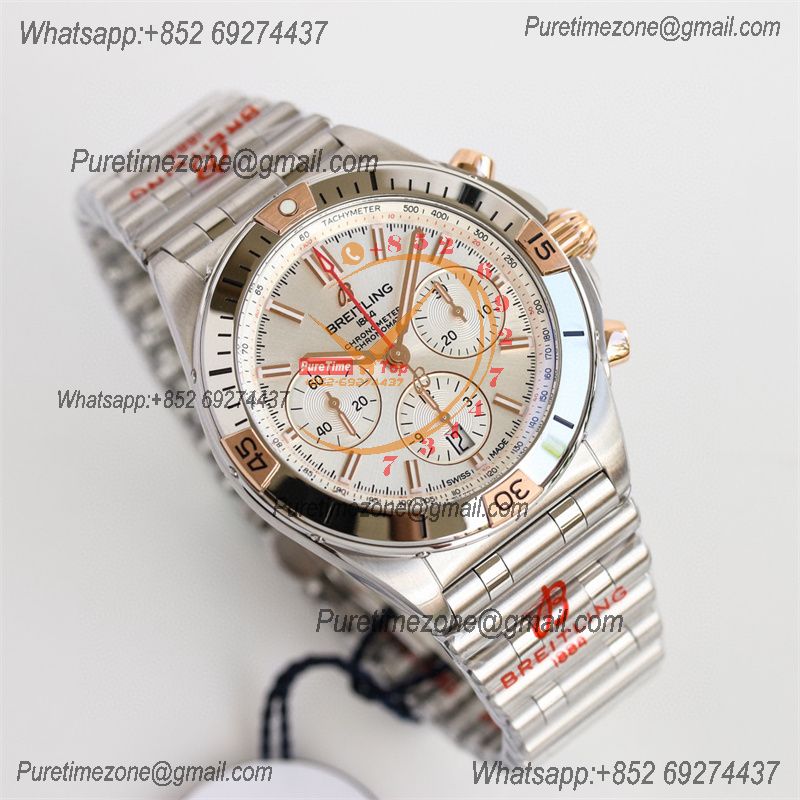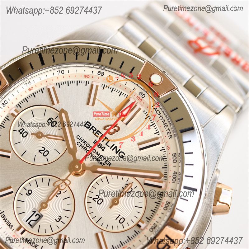 Chronomat B01 IB0134101 A7750 Automatic Chronograph Mens Watch Best Edition BLSF 42mm RG Silver Dial SS Bracelet