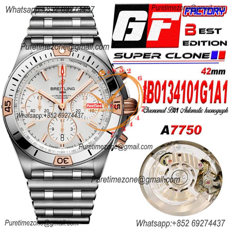 Chronomat B01 42 IB0134101G1A1 A7750 Automatic Chronograph Mens Watch Best Edition GF RG Whtie Dial SS Bracelet CHS