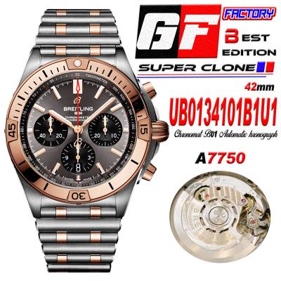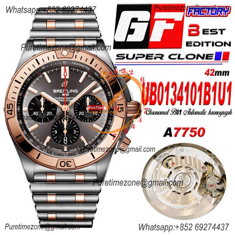 Chronomat B01 42 UB0134101B1U1 A7750 Automatic Chronograph Mens Watch Best Edition GF RG Gray Dial SS Bracelet CHS