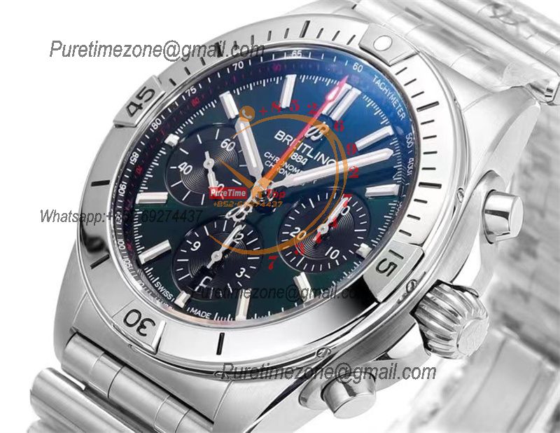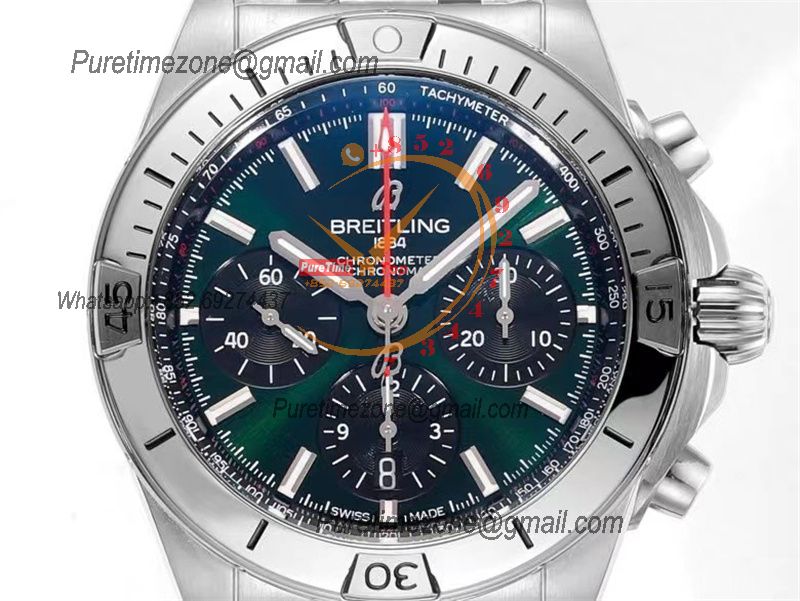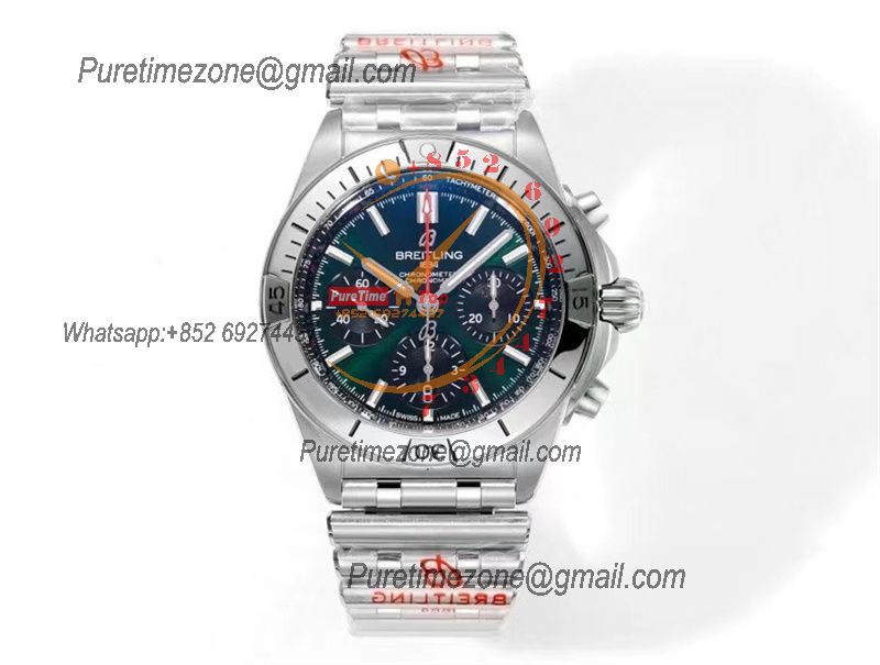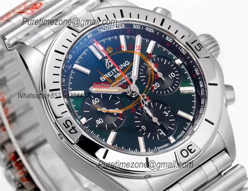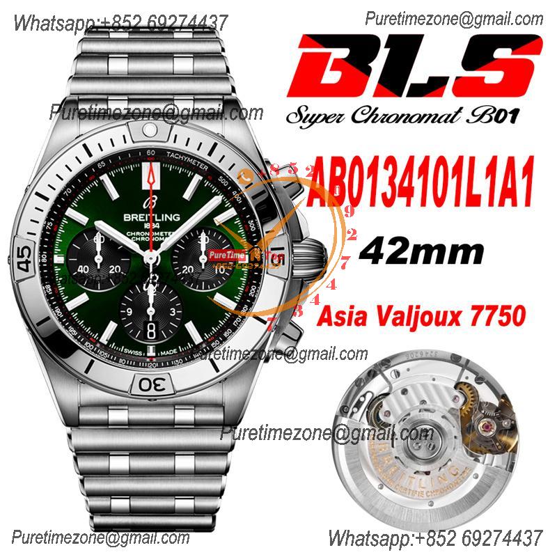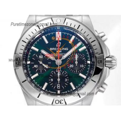Chronomat B01 AB0134101 A7750 Automatic Chronograph Mens Watch Best Edition BLSF 42mm Green Dial SS Bracelet