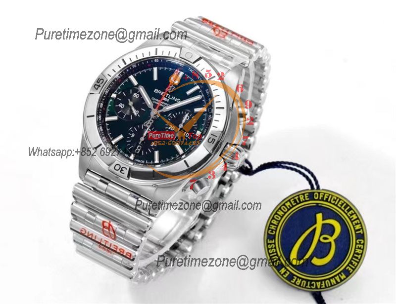 Chronomat B01 AB0134101 A7750 Automatic Chronograph Mens Watch Best Edition BLSF 42mm Black Dial SS Bracelet