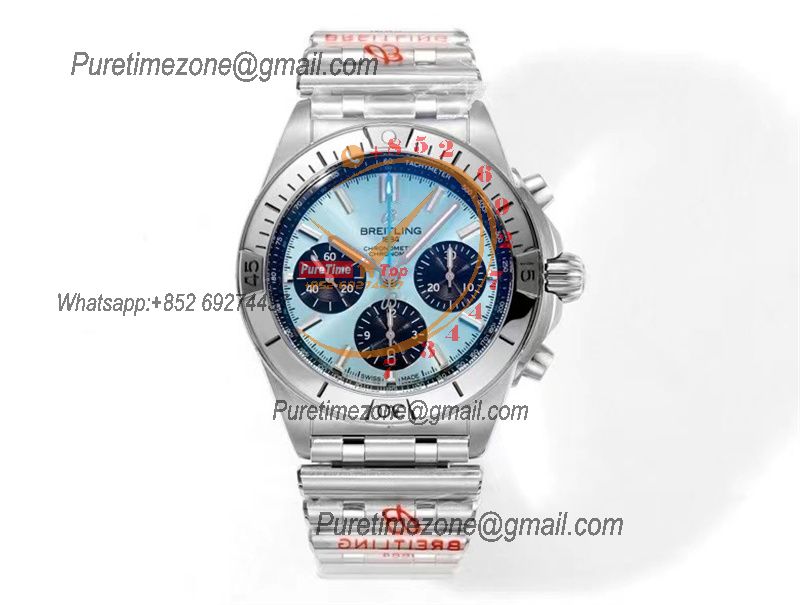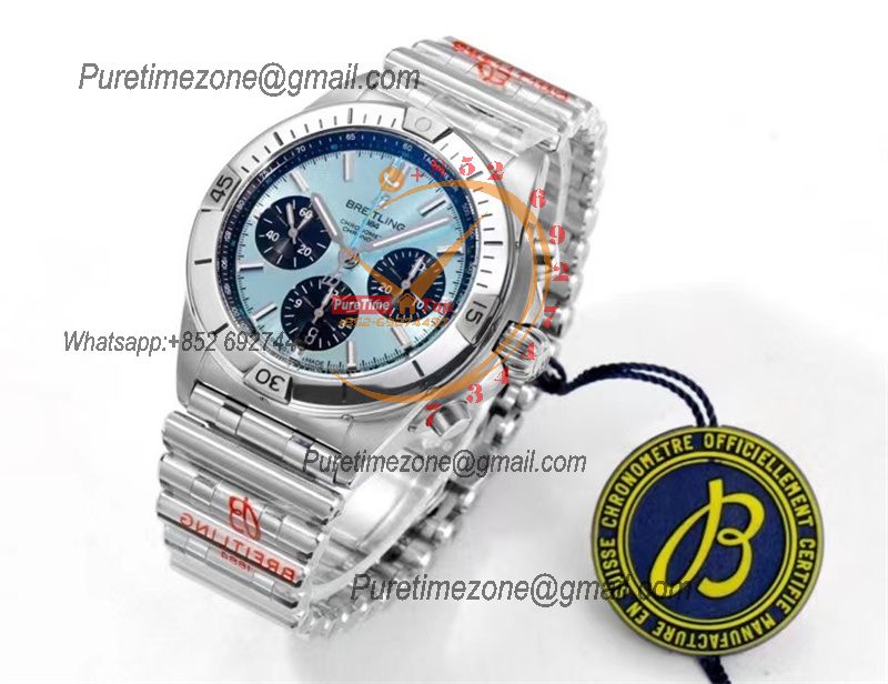 Chronomat B01 AB0134101 A7750 Automatic Chronograph Mens Watch Best Edition BLSF 42mm Blue Dial SS Bracelet