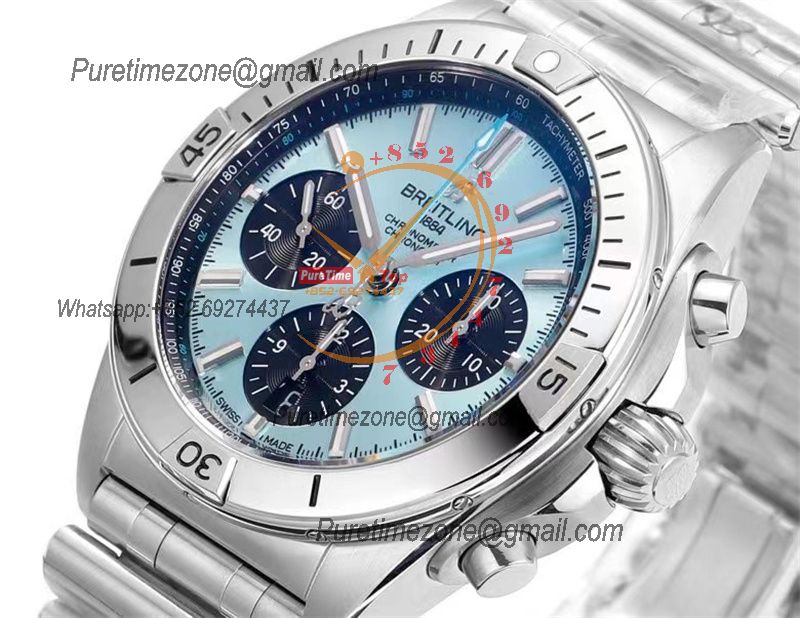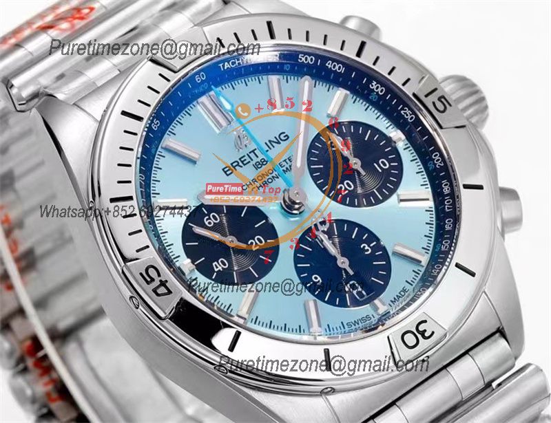 Chronomat B01 AB0134101 A7750 Automatic Chronograph Mens Watch Best Edition BLSF 42mm Tiffany Blue Dial SS Bracelet