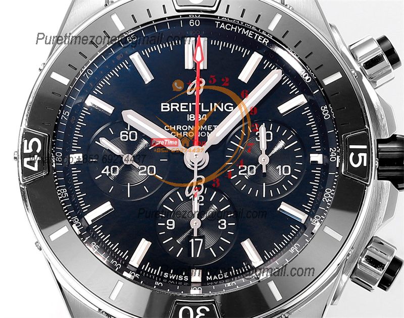 Chronomat B01 PB0134101 A7750 Automatic Chronograph Mens Watch Best Edition BLSF 42 SS Black Dial Rubber