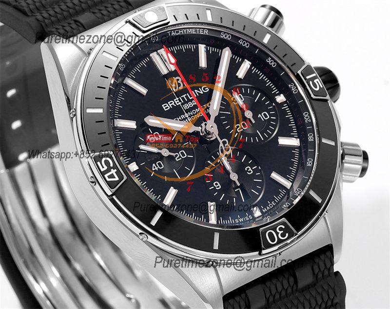 Chronomat B01 AB0136251 A7750 Automatic Chronograph Mens Watch Best Edition BLSF 44mm Black Dial Black Rubber