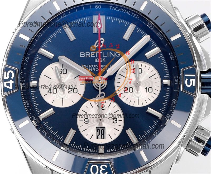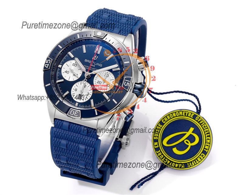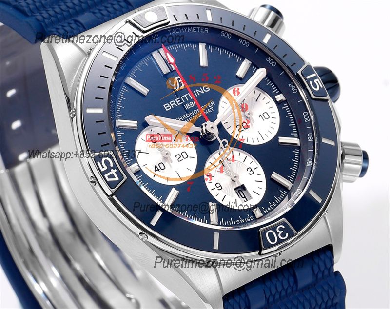Chronomat B01 AB0136251 A7750 Automatic Chronograph Mens Watch Best Edition BLSF 44mm Blue Dial Blue Rubber