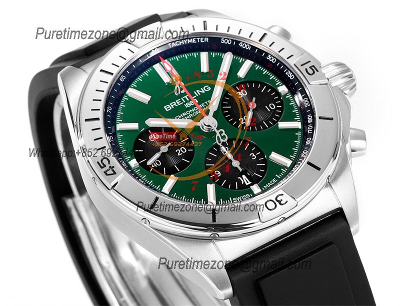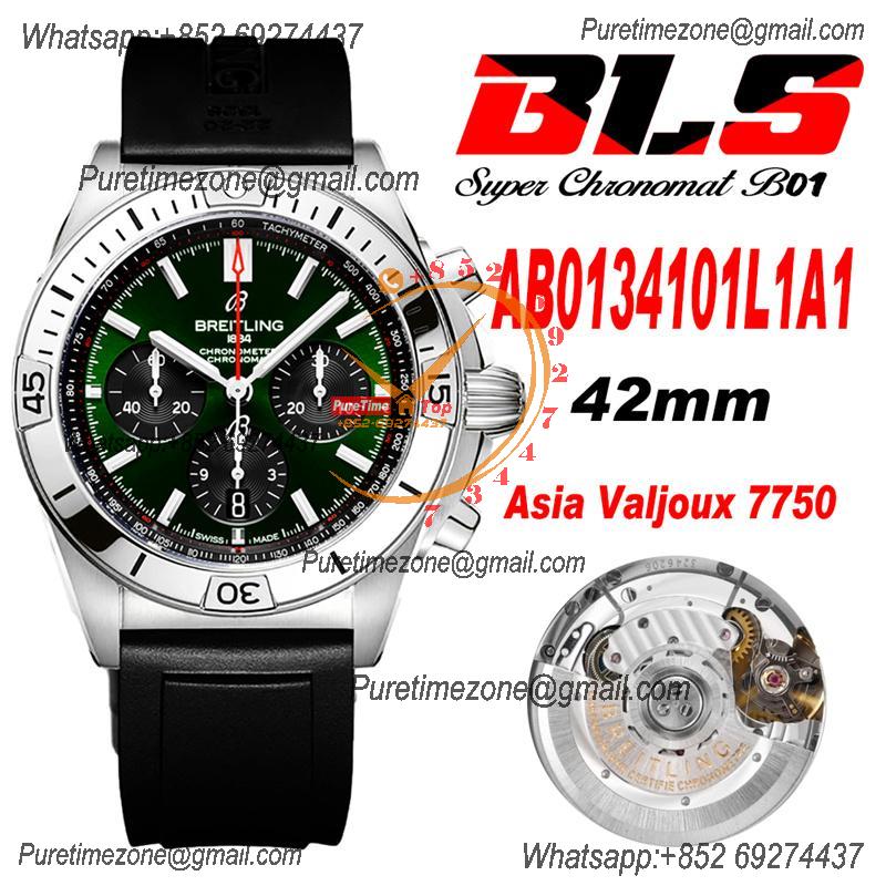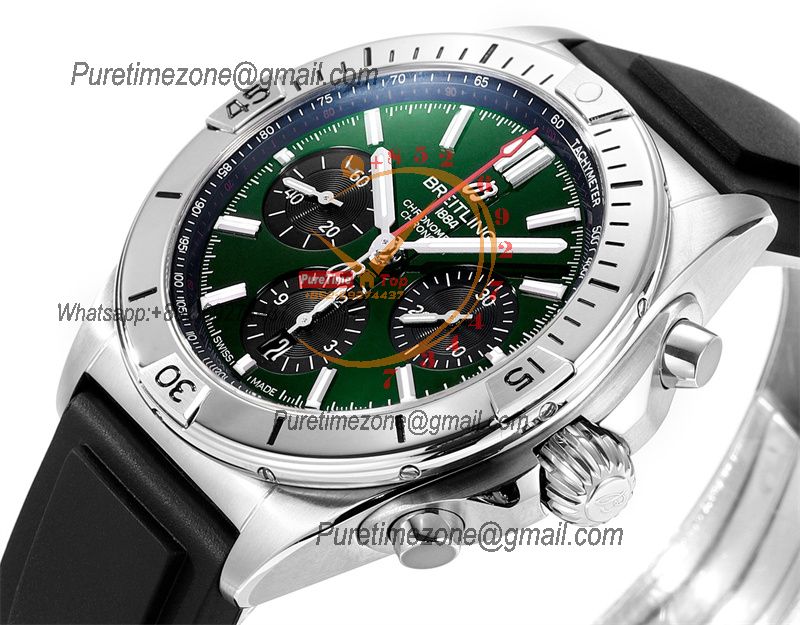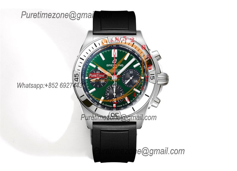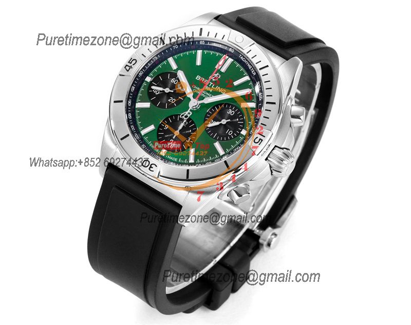 Chronomat B01 PB0134101 A7750 Automatic Chronograph Mens Watch Best Edition BLSF 42 SS Green Dial Black Rubber