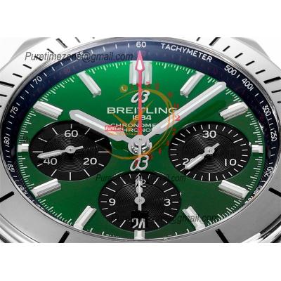 Chronomat B01 AB0134101 A7750 Automatic Chronograph Mens Watch Best Edition BLSF 42mm Green Dial SS Bracelet