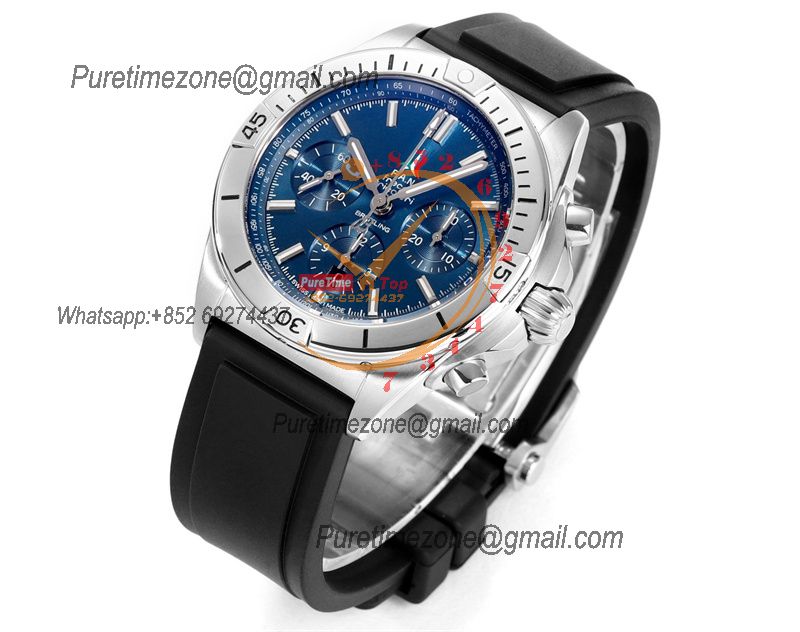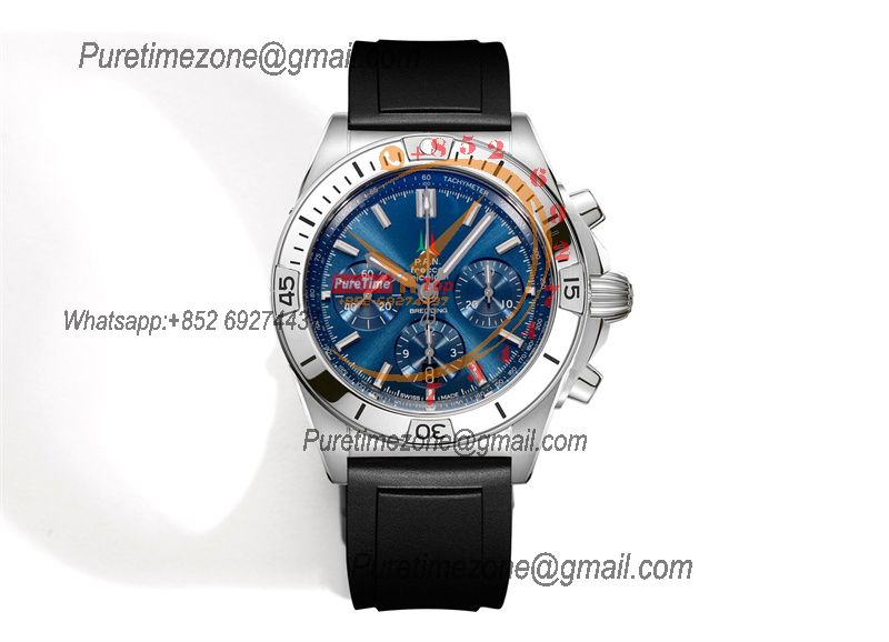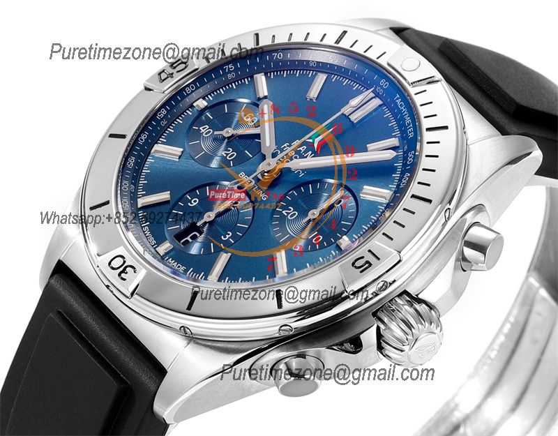 Chronomat B01 PB0134101 A7750 Automatic Chronograph Mens Watch Best Edition BLSF 42 SS Blue Dial Black Rubber