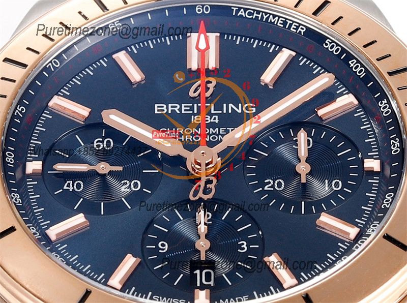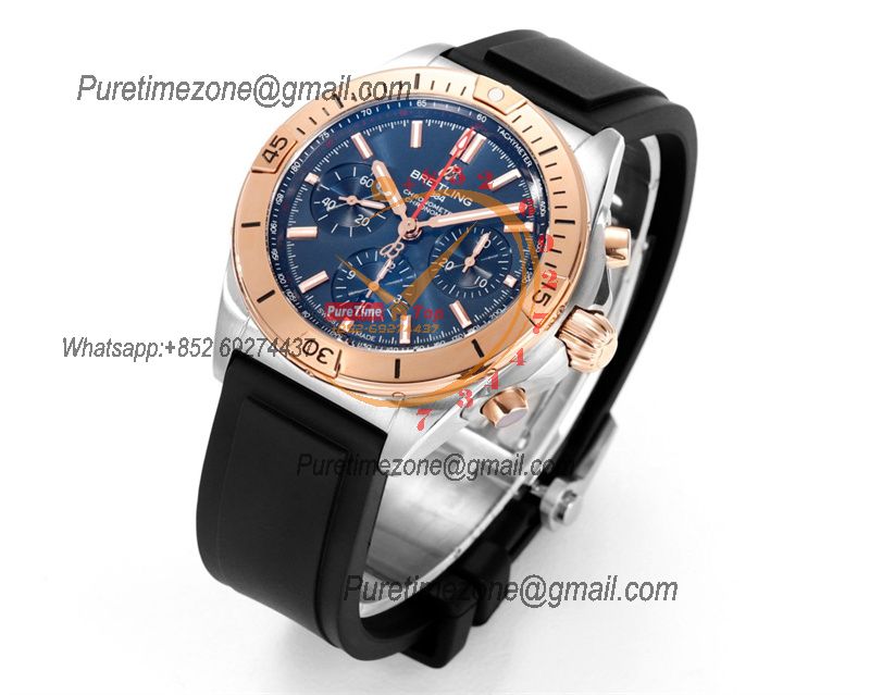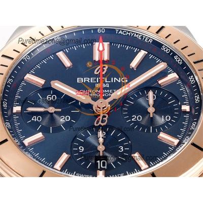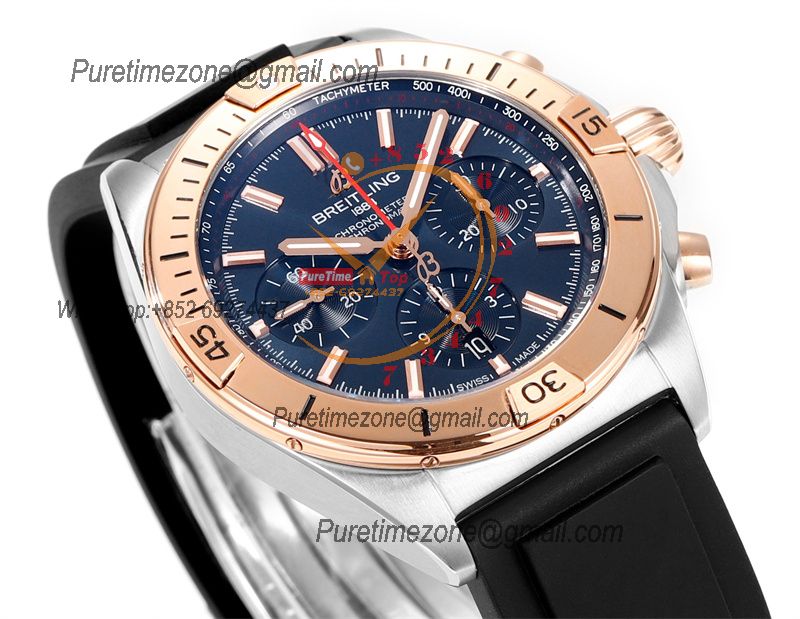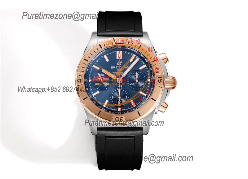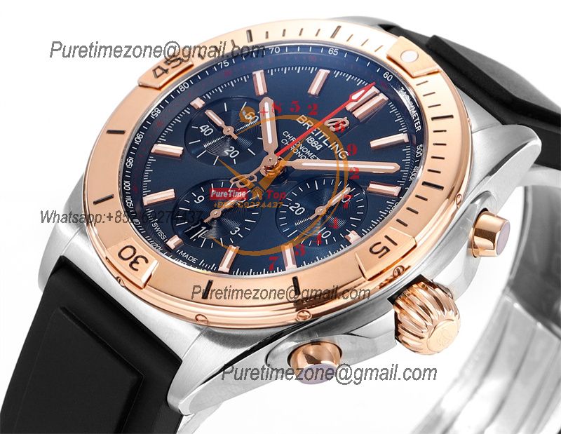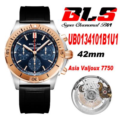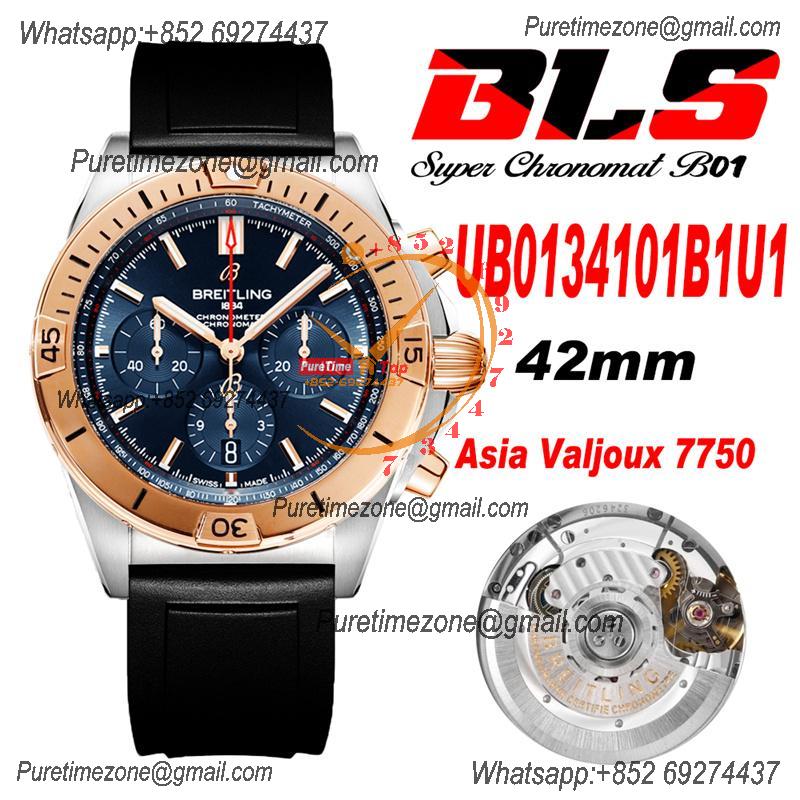 Chronomat B01 UB0134101 A7750 Automatic Chronograph Mens Watch Best Edition BLSF 42 SS RG Blue Dial Black Rubber
