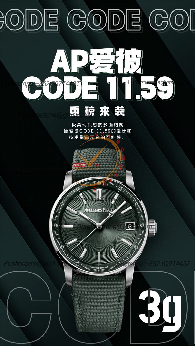 Code 11.59 15210 A4302 Automatic Mens Watch 3GF Best Edition 41mm SS Green Index Textured Dial Nylon Leather CHS