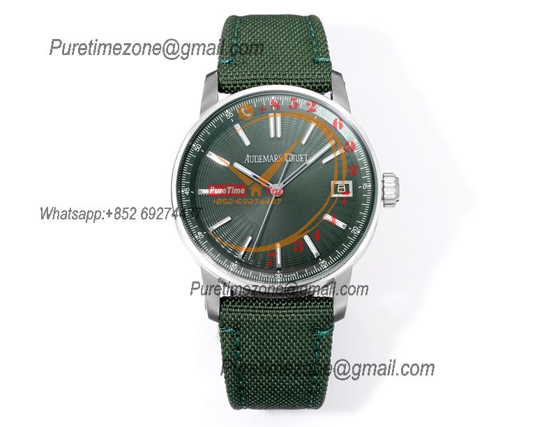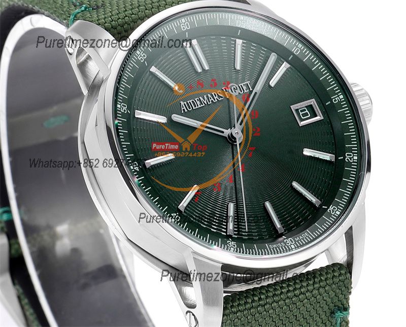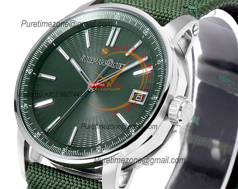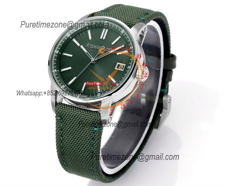 Home A+ P Code 11.59 15210 A4302 Automatic Mens Watch 3GF Best Edition 41mm SS Green Index Textured Dial Nylon Leather CHS