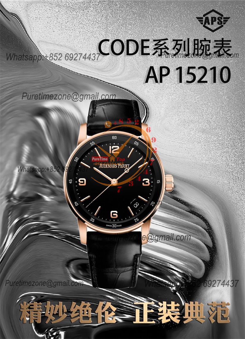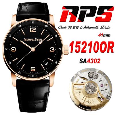 Home A+ P Code 11.59 15210BC SA4302 Automatic Mens Watch APSF Best Edition RG Black Dial Leather Strap CHS