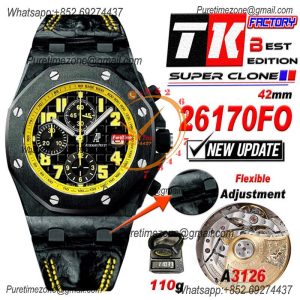 Royal Oak Offshore 26170FO ‘Bumble Bee’ A3126 Automatic Chronograph Mens Watch Best Edition TKF 42 Forged Carbon Leather