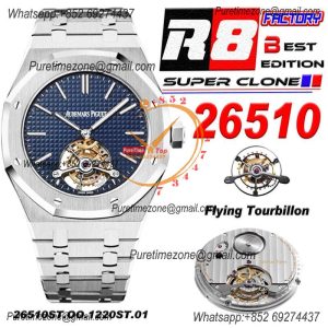 Royal Oak 26510 Extra Thin Hand Winding Tourbillon Mens Watch Best Edition R8F 41 Blue Dial SS Bracelet CHS