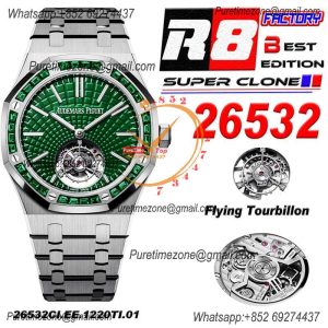 Royal Oak 26532 Extra Thin Automatic Tourbillon Mens Watch Best Edition R8F 42mm Diamond Bezel Green Dial SS Bracele