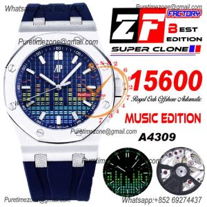 Royal Oak Offshore 15600 Music Edition A4309 Automatic Mens Watch Best Edition ZF Steel Case Blue Dial Rubber Strap CHS