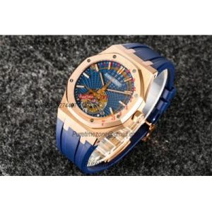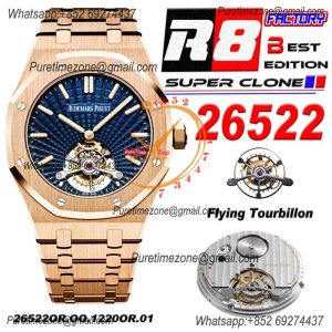 Royal Oak 26521 Extra Thin Automatic Tourbillon Mens Watch Best Edition R8F 42mm RG Blue Dial Rubber Strap CHS