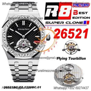 Royal Oak 26521 Extra Thin Hand Winding Tourbillon Mens Watch Best Edition R8F Diamonds Bezel Black Dial SS Bracele
