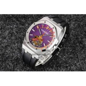 Royal Oak 26521 Extra Thin Automatic Tourbillon Mens Watch Best Edition R8F 42mm Purple Dial Rubber Strap CHS