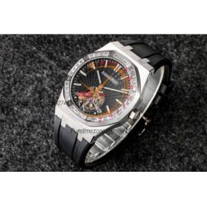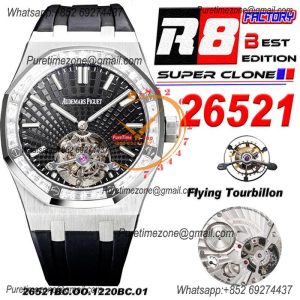 Royal Oak 26521 Extra Thin Automatic Tourbillon Mens Watch Best Edition R8F 42mm Diamond Bezel Black Dial Rubber Strap