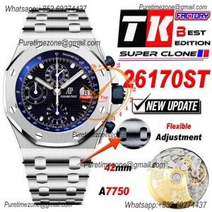 Royal Oak Offshore 26170ST Safari A7750 Automatic Chronograph Mens Watch Best Edition TKF 42 Blue Dial SS Bracelet CHS