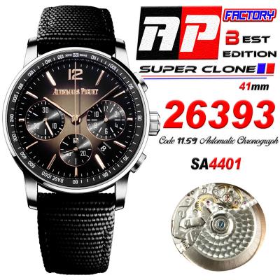Home A+ P Code 11.59 26393 A4401 Automatic Chronograph Mens Watch APF Best Edition 41 Black Brown Dial Nylon Strap CHS