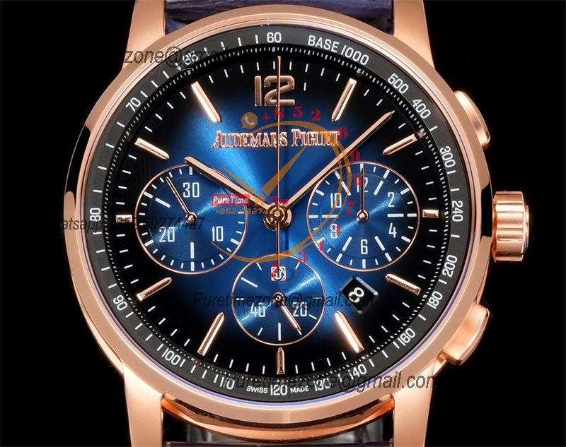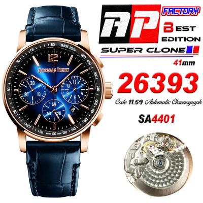 Home A+ P Code 11.59 26393 A4401 Automatic Chronograph Mens Watch APF Best Edition 41 RG Black Blue Dial Nylon Leather CHS