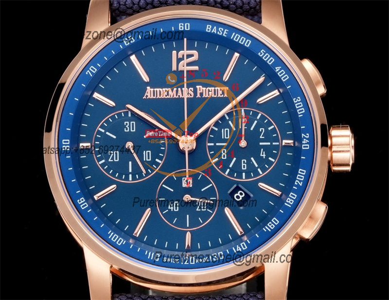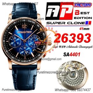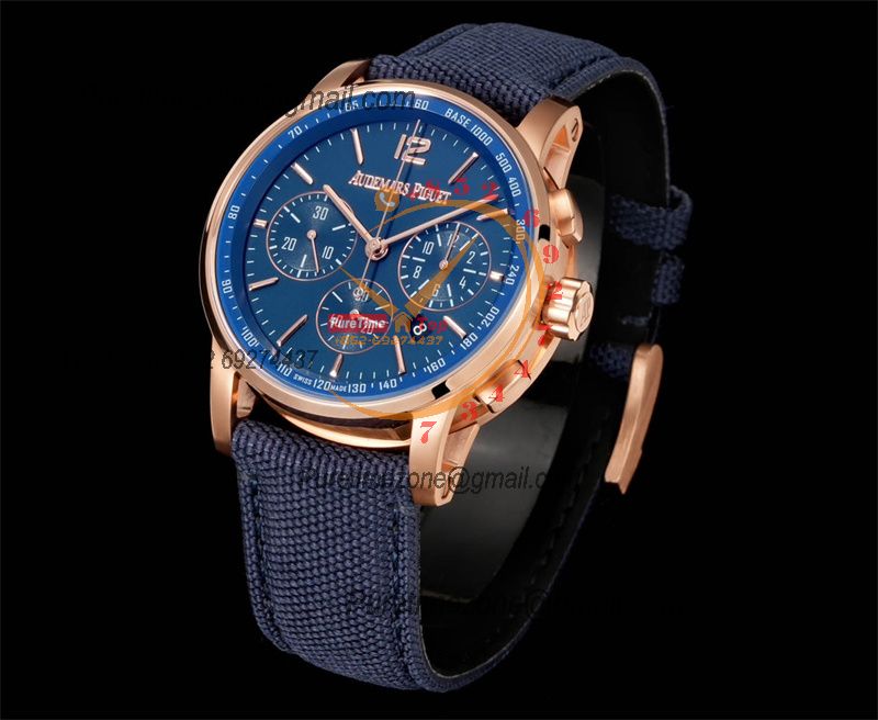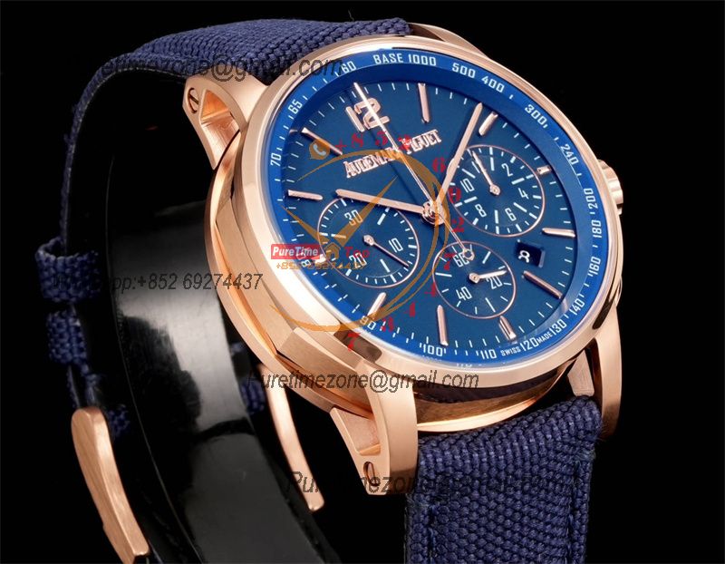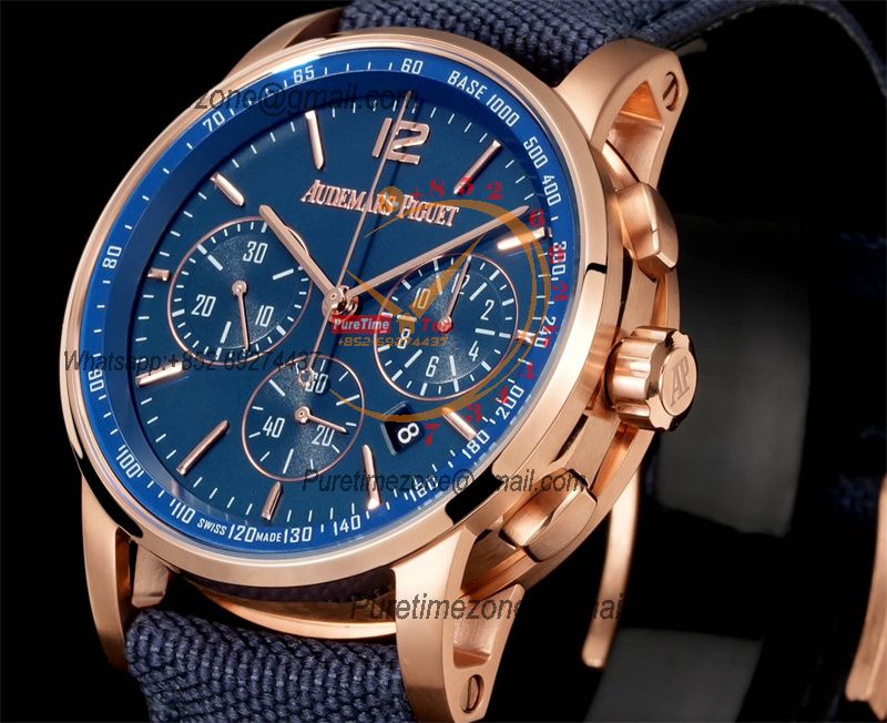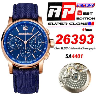 Home A+ P Code 11.59 26393 A4401 Automatic Chronograph Mens Watch APF Best Edition 41 RG Blue Dial Nylon Leather CHS