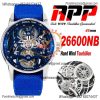 Home A+ P Code 11.59 26600 Tourbillon Automatic Mens Watch APPF Best Edition Black Skeleton Dial Blue Leather Strap CHS