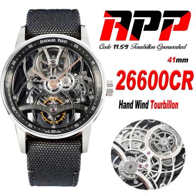 Code 11.59 26600 Tourbillon Automatic Mens Watch APPF Best Edition Black Skeleton Dial Gray Nylon Strap CHS