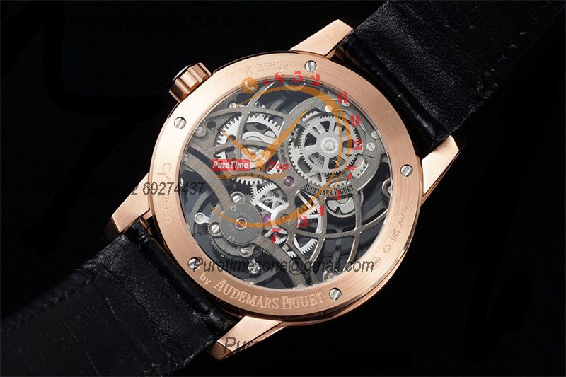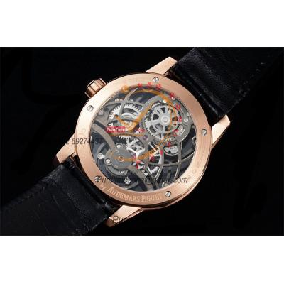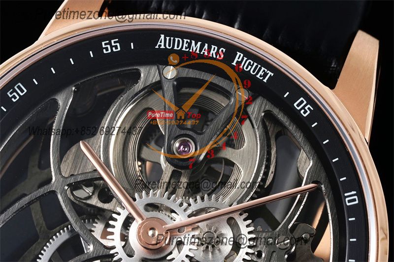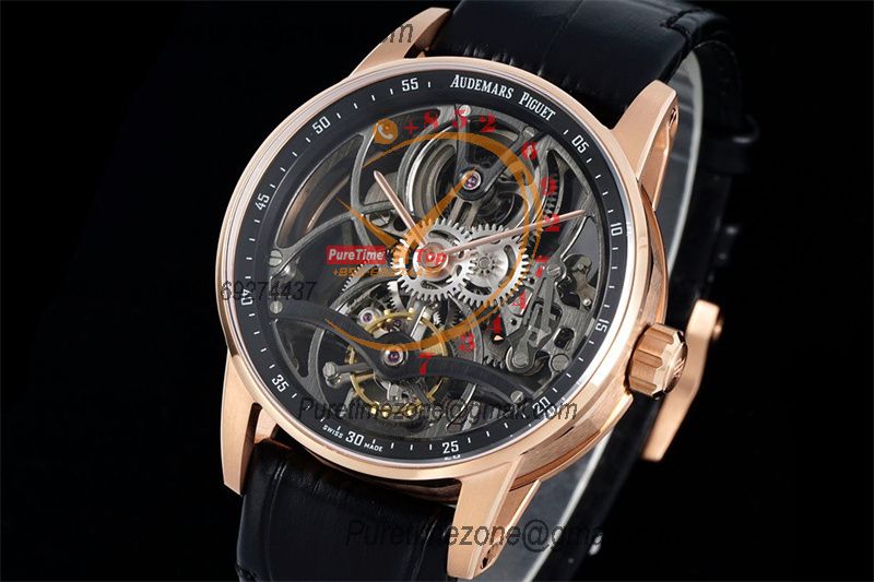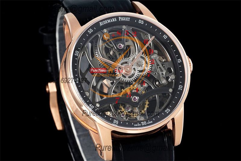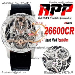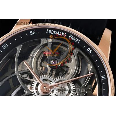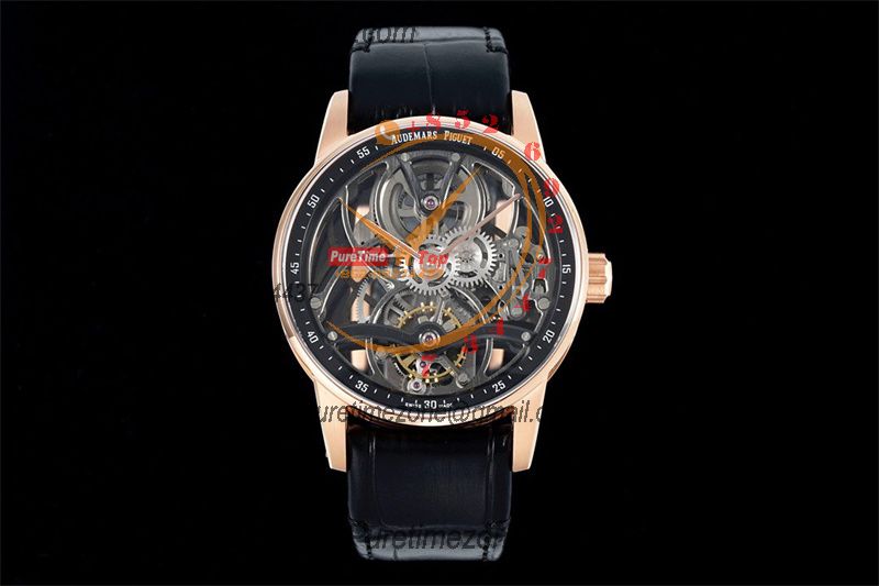 Home A+ P Code 11.59 26600 Tourbillon Automatic Mens Watch APPF Best Edition RG Black Skeleton Dial Black Leather Strap CHS